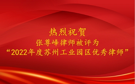 喜报|热烈祝贺我所张尊峰律师荣获“2022年度苏州工业园区优秀律师”荣誉称号